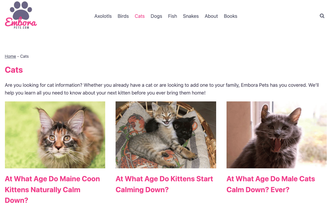 Three separate dedicated articles about “calming cats down”.